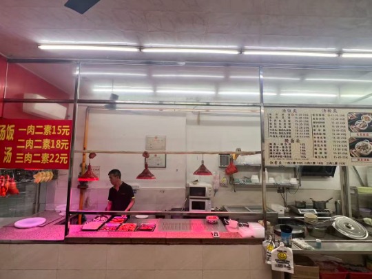 ◦ 装修:现代快餐风,前厅设10+张餐桌(可容纳30-40人),墙面贴满菜品海报(汤粉/汤饭/腌面等),明档厨房+点餐区布局合理;