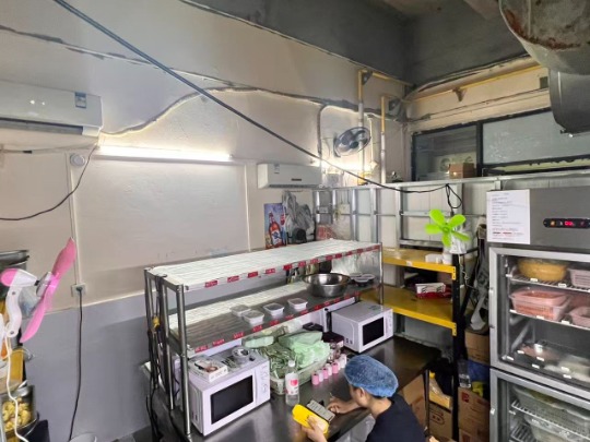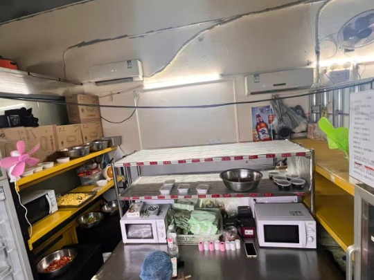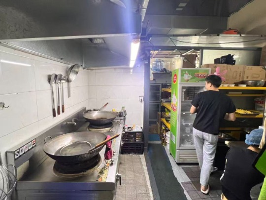 • 后厨:全套餐饮设备(4门保鲜柜、蒸饭柜、多台微波炉、操作台、抽油烟机、锅具/餐具等),9成新,可直接出餐;