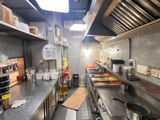 ◦ 后厨:炸炉3台、不锈钢操作台、冷藏柜、微波炉、全套厨具/调料罐等