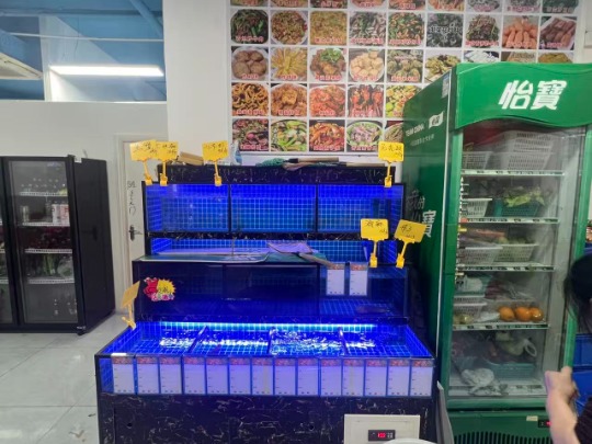 1. 装修与设备:全新装修风格大气,蓝色吊顶搭配红色软装,符合大排档消费氛围;后厨配备全套不锈钢厨具、大功率灶台、冷藏柜、海鲜养殖池等专业设备,设施齐全且九成新,接手即可开业。
