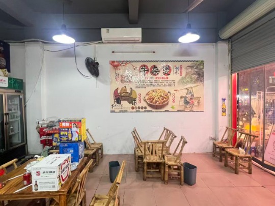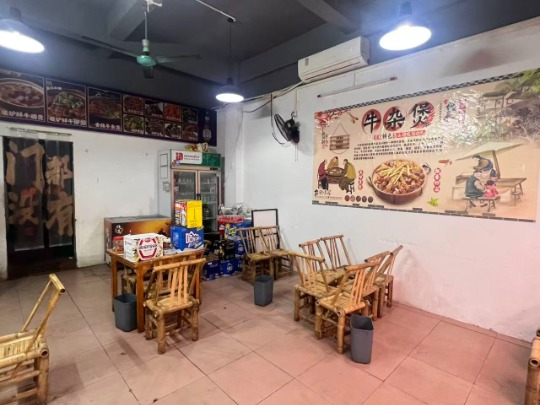 ◦ 店内装修贴合牛杂煲餐饮风格,墙面主题海报、特色竹制桌椅打造出市井餐饮氛围,无需二次装修;
